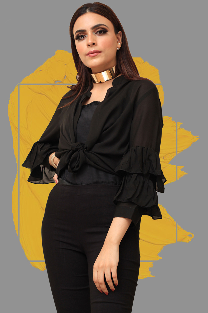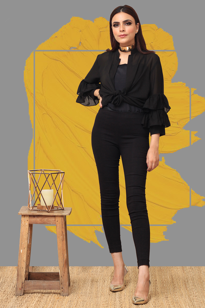 Black Georgette top drape, can be layered with a tank top or can be left open over a shirt.