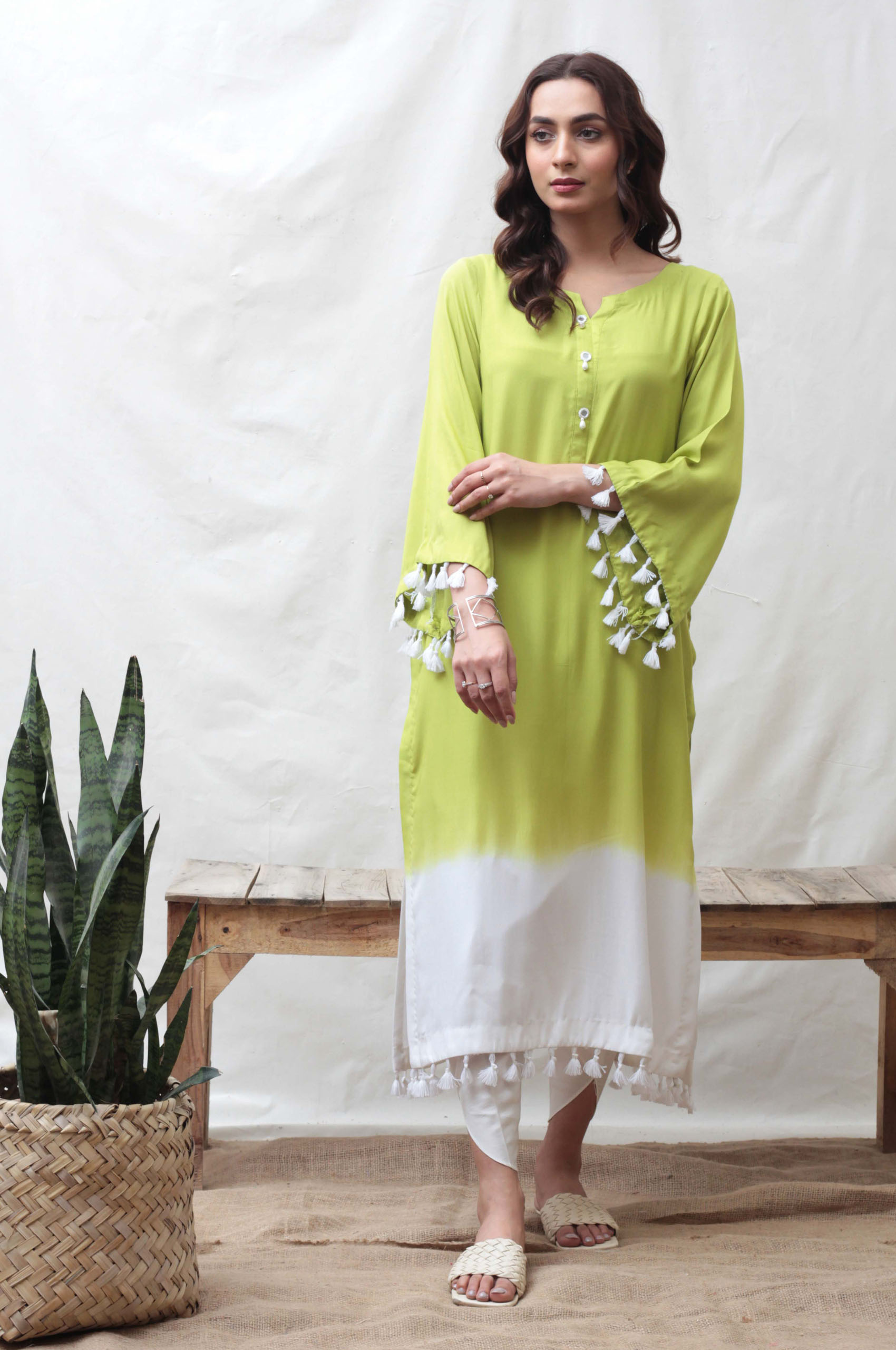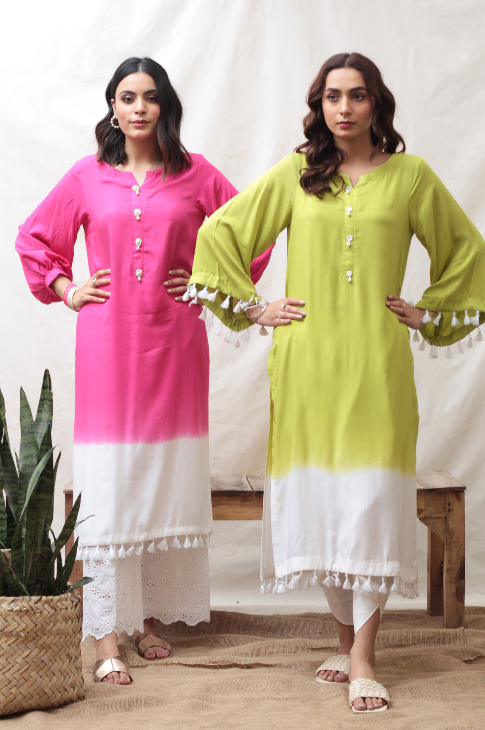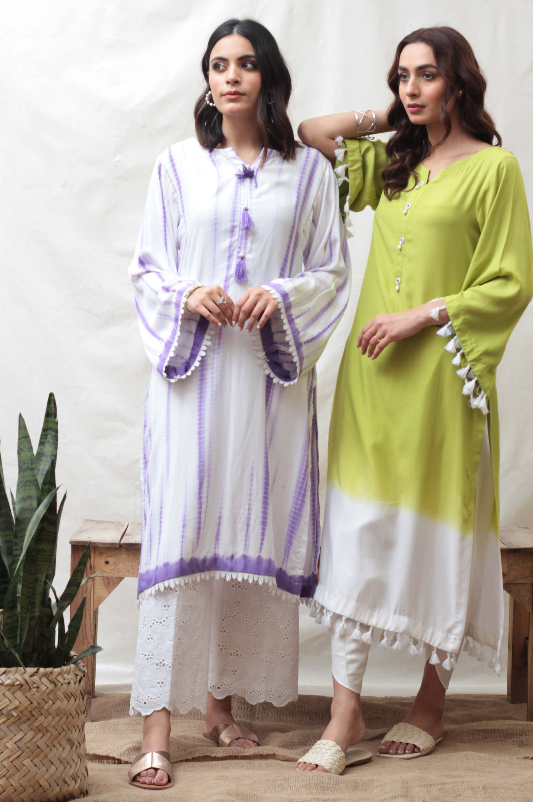 Our inhouse hand dyed malaee lawn shirts with the 2022 summer color pallete, a definitely must have for your summer wear, with laced hems and borders, can be paired with tulip, shalwar or trouser