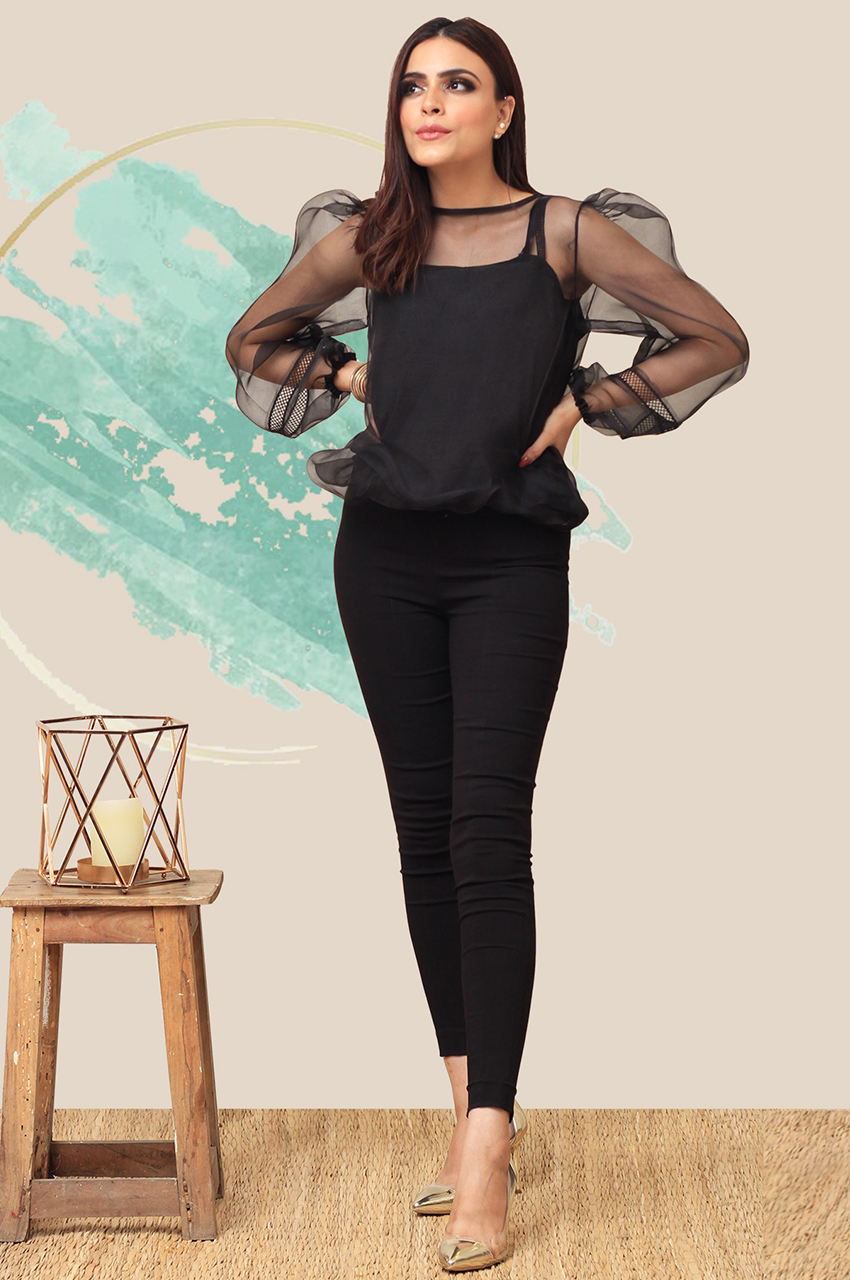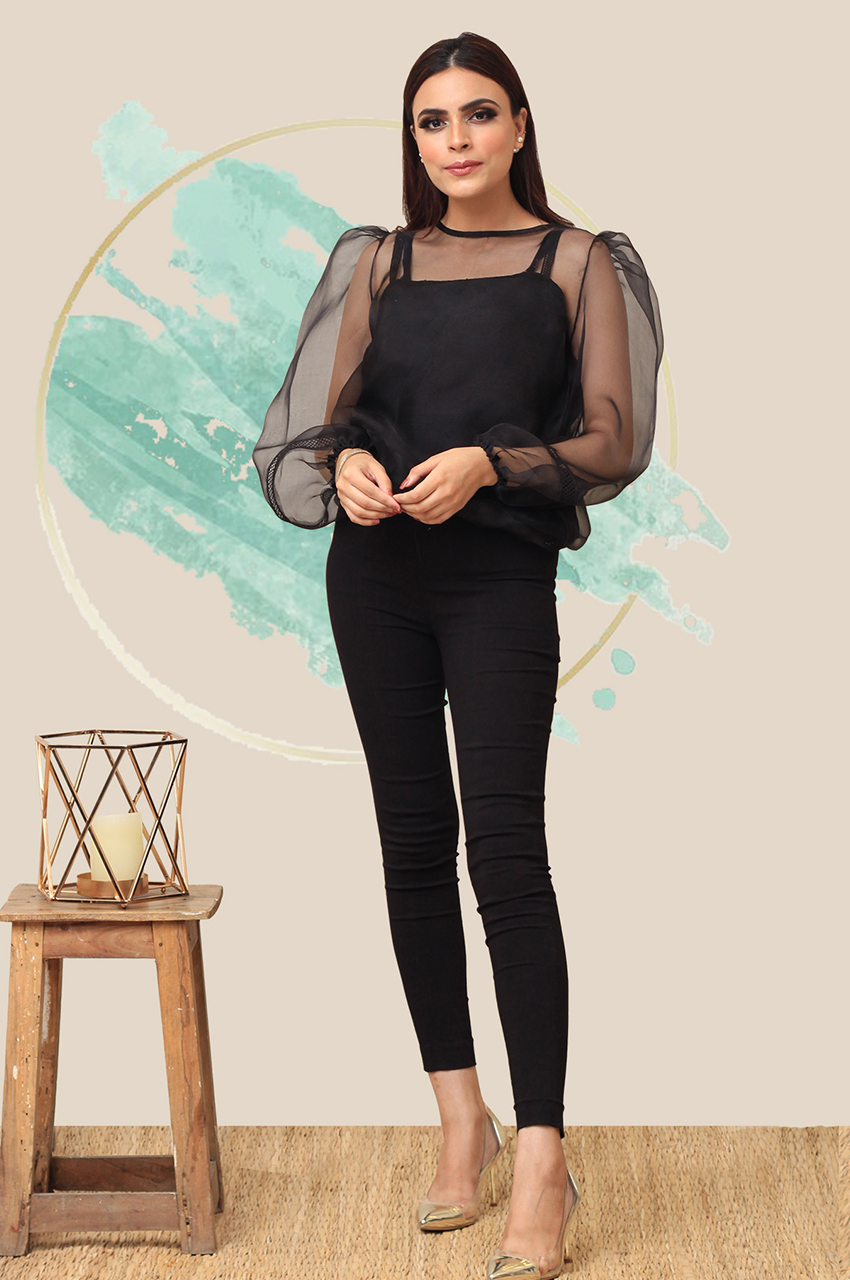 Nicely stitched organza top perfect for the upcoming festive season! Can be paired with black pants and tights or even a nice pair of jeans