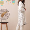 Pink doria law shirt with detailed laced neckline, pin pleated sleeves with added lace on ghaira and sleeves, paired with straight trouser